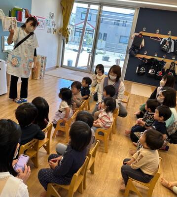 こちらは楽しいだけではなく、先生が子どもの日の由来を話しています。
