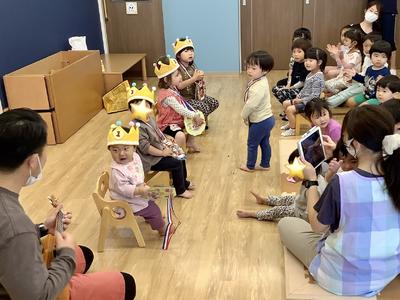担当の保育士によるウクレレ演奏にのせて「たんたんたんじょうび」のお歌をお名前入りで、みんなで歌ってお祝い🎉